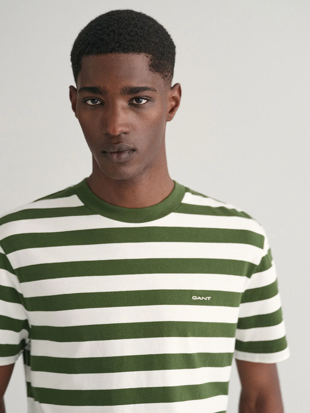 Gant Men Green Striped Round Neck Short Sleeves Tshirt