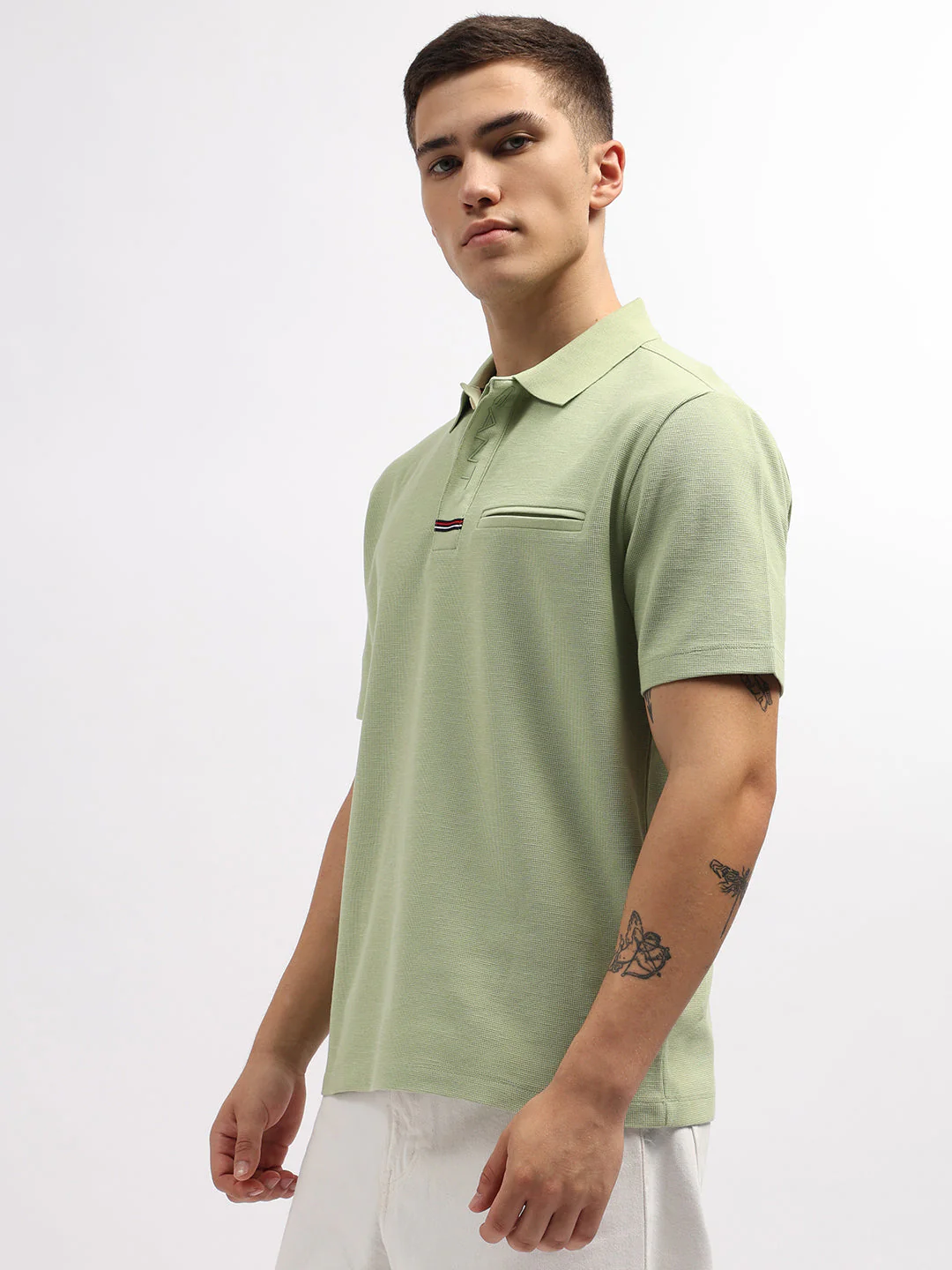 Discover the perfect blend of style and comfort with our mens green polo t-shirt. Crafted from soft, breathable cotton, this regular-fit tee features a classic polo collar, short sleeves, and a sleek button closure. Its solid green color adds a vibrant touch to any outfit, making it a versatile wardrobe staple.
