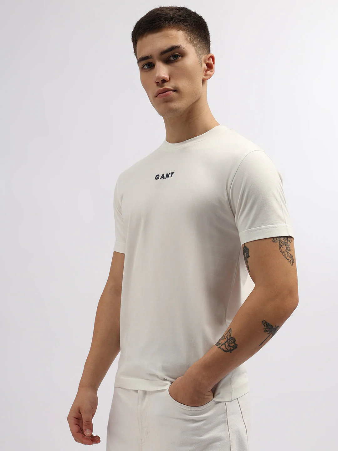 Gant Men White Solid Round Neck Short Sleeves Tshirt