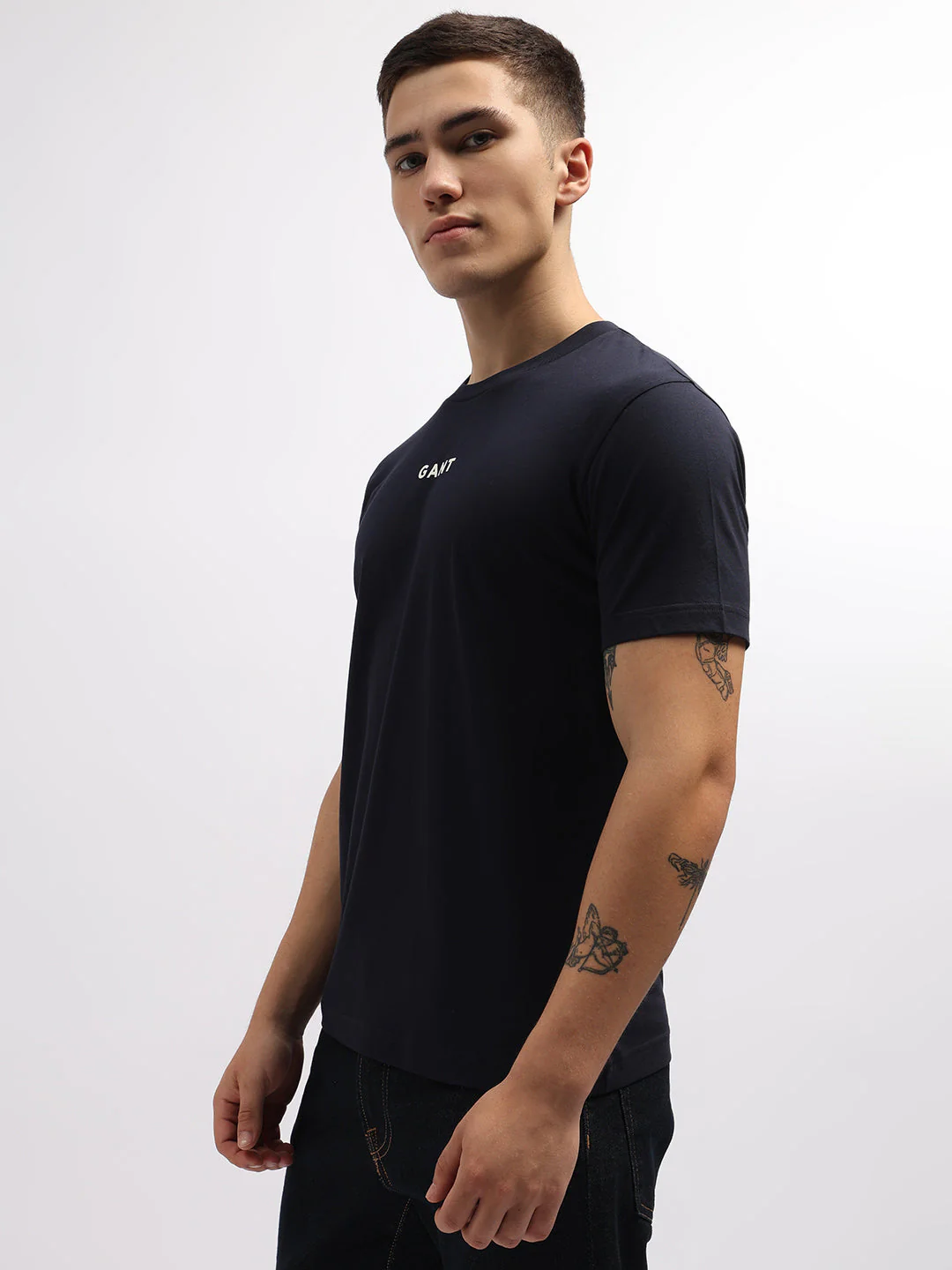 Gant Men Navy Blue Solid Round Neck Short Sleeves Tshirt