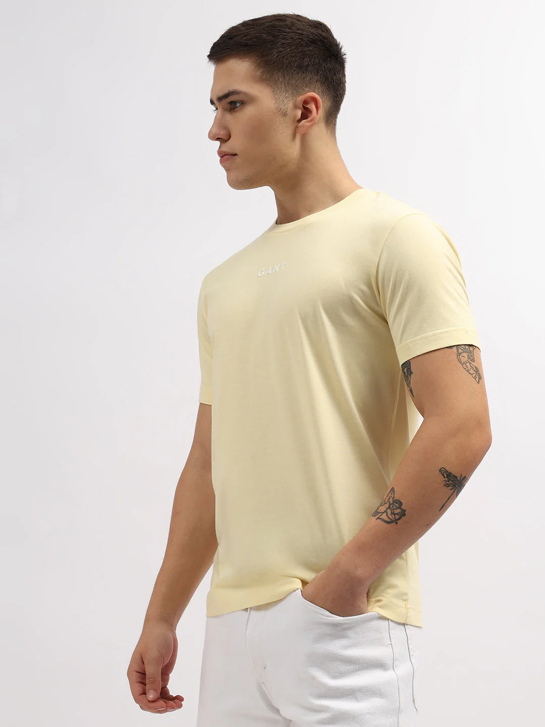 Gant Men Yellow Solid Round Neck Short Sleeves Tshirt