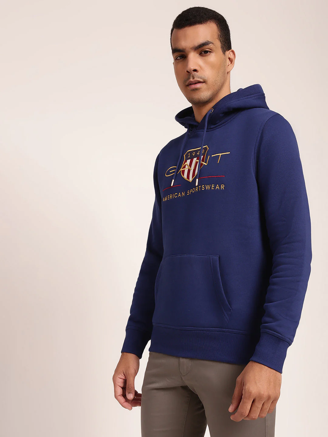 Elevate your casual style with this vibrant blue sweatshirt, featuring a bold brand logo pattern. Crafted from soft poly-cotton fabric, it offers ultimate comfort and warmth. The full sleeves and cozy hood make it perfect for any season. Effortlessly pull it on for a laid-back look that’s both stylish and functional.