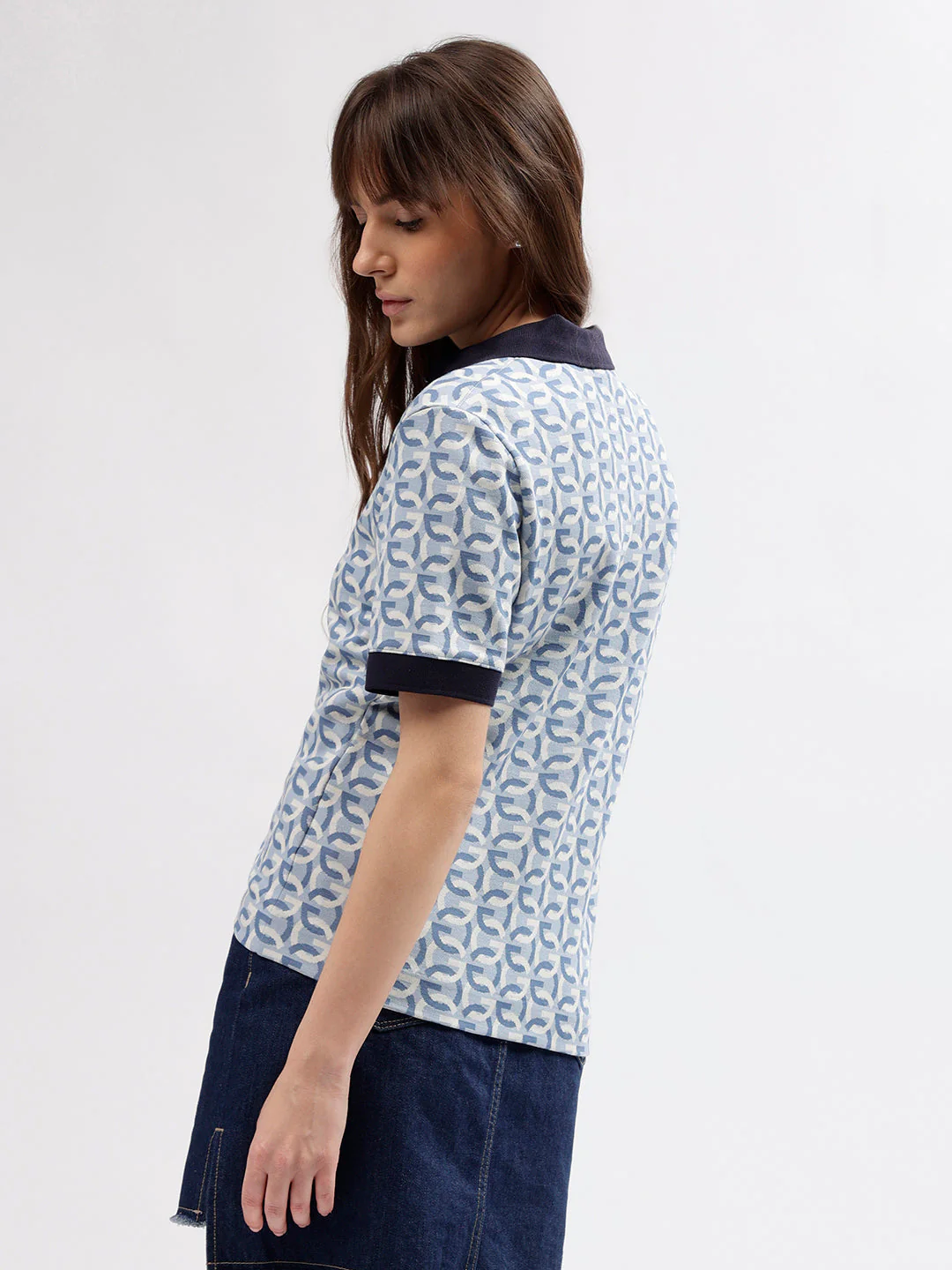 Gant Women Blue Printed Polo Collar Short Sleeves T-shirt