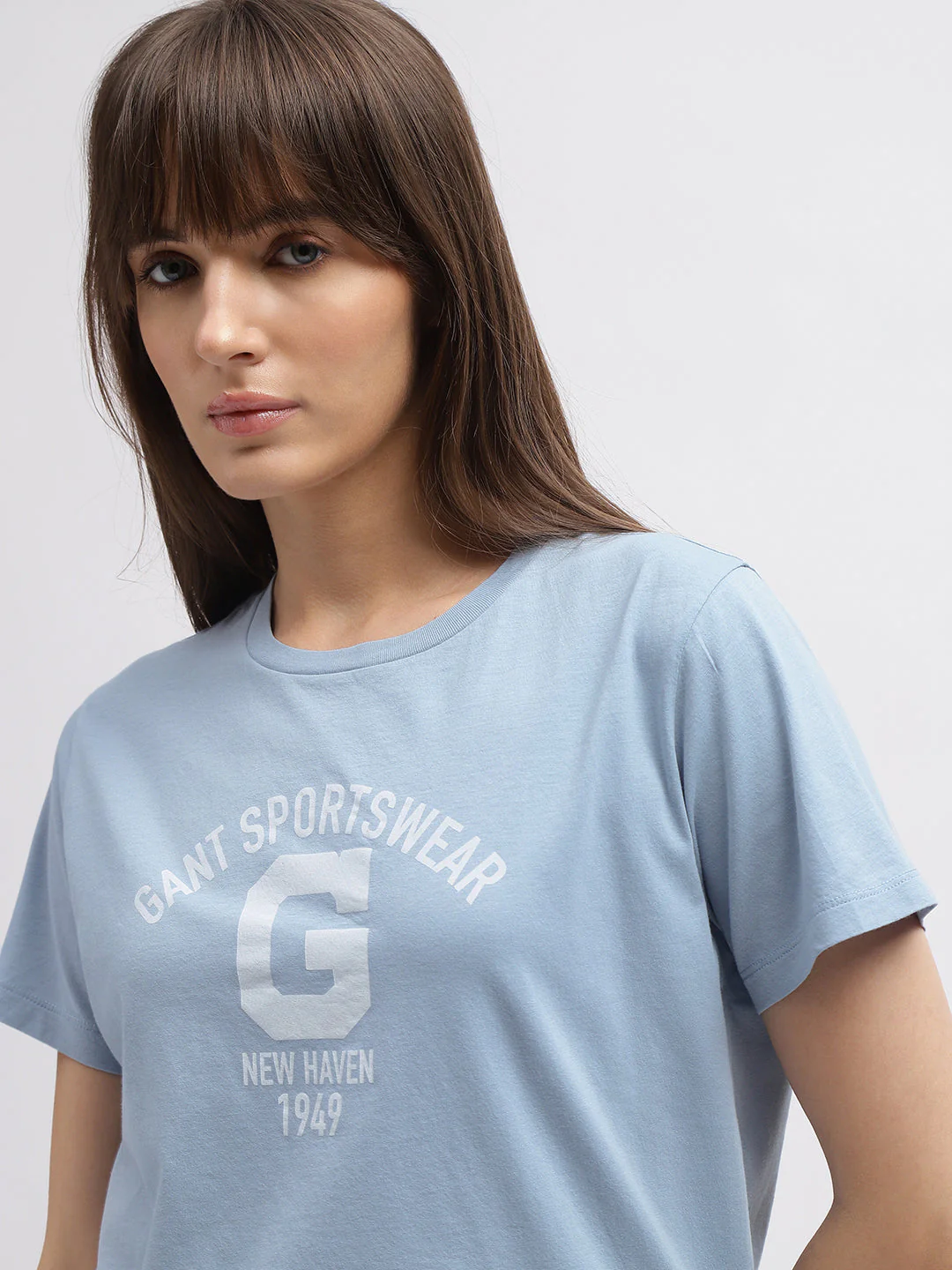 Gant Women Blue Printed Round Neck Short Sleeves T-Shirt—