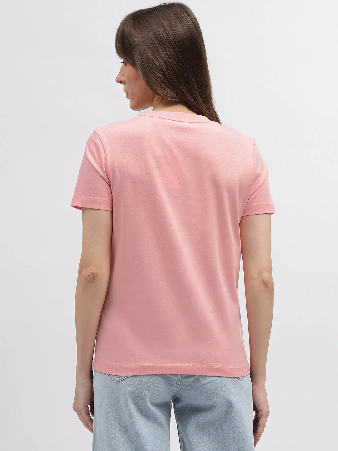 Gant Women Pink Solid Round Neck Short Sleeves T-Shirt